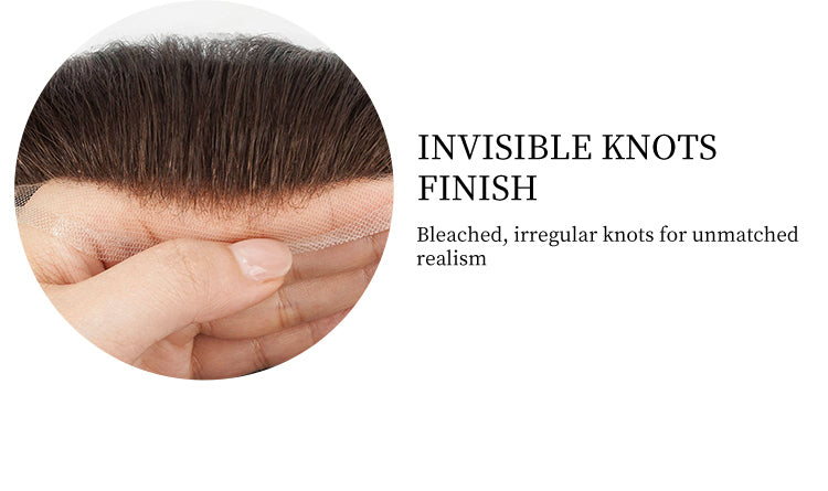 Tiny, irregular, and bleached knots reduce visibility at the front edge for a natural-looking hairline in close-up settings.