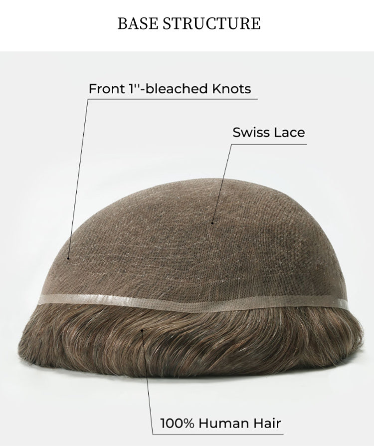 Air is constructed using a full Swiss lace base, offering exceptional breathability and transparency across the entire scalp. The medium mesh design balances airflow with structure, making it suitable for extended daily wear while maintaining a natural appearance.